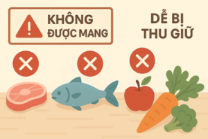 - Không mang: thịt tươi, cá tươi, trái cây, rau củ tươi.