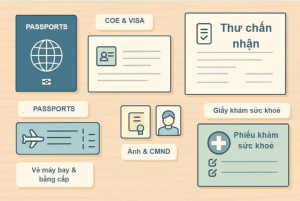 - Giấy xác nhận tư cách lưu trú (COE) + visa — bản gốc và 1-2 bản photo.