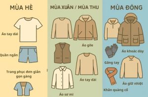 - Mùa xuân/thu: áo khoác mỏng, áo dài tay, áo vest/áo sơ mi.